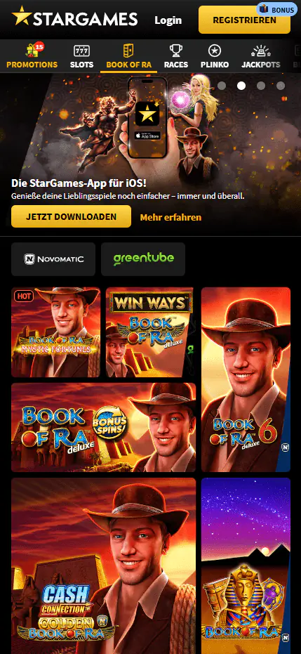 Mit der Mobile App genießen Sie alle Vorteile des StarGames Online: Registrierung, Einzahlungen, Freispiele nutzen, Bonusangebote aktivieren und Echtgeld gewinnen – alles mit einem Fingertipp.